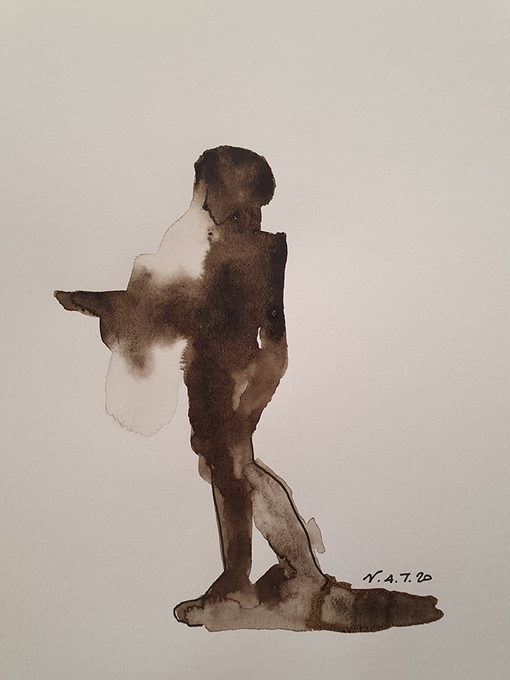Questo dipinto appartiene alla serie "Uomini 2020" realizzata dall'artista Carlo Vercelli nel 2020. Realizzato con acquerello su cartoncino.